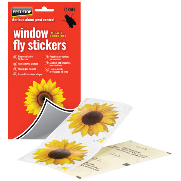 These Pest-Stop window fly-catchers exploit the attraction flies have for windows and light. Simply remove the cover paper and apply to window. With a sunflower design, the stickers are attractive yet practical. Their powerful adhesive will hold even the largest house flies or bluebottles. They are safe, with no chemicals or odours.