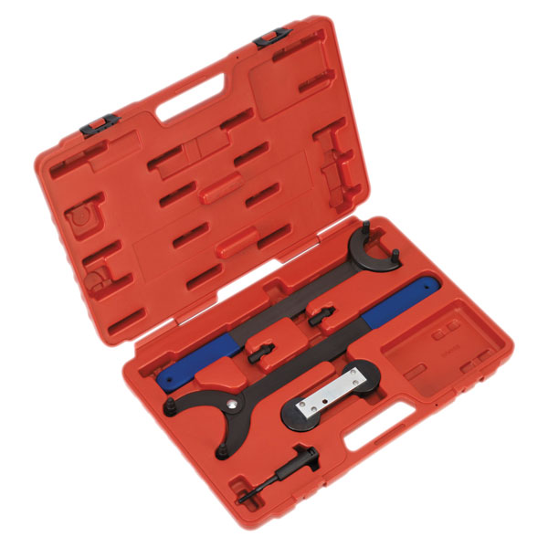 Kit consists of camshaft alignment tool, chain tension adjuster and pulley holding tools. Suitable for 1.8 and 1.8 turbo chain drive petrol engines fitted to VAG vehicles. Supplied in carry-case.