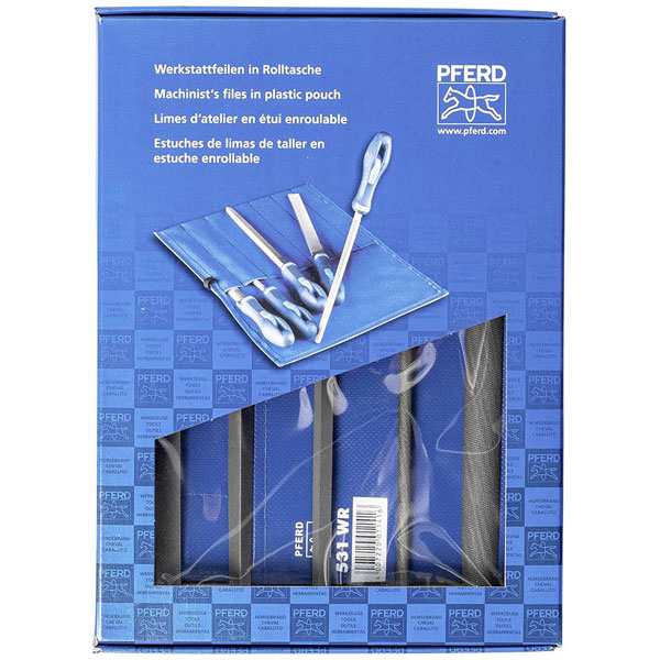 The Workshop File Set by PFERD, model number 11801531, includes a PVC roll-up bag for easy storage and transport. It features a length of 200 mm and contains one piece, designed for precise filing tasks. This durable file set is typically used for professional and industrial applications requiring detailed metalwork or woodwork shaping.