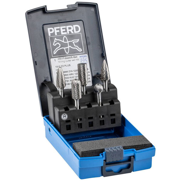 PFERD 21901512 Burr Set Carbide 6mm Shank 5 Pins Durable Box