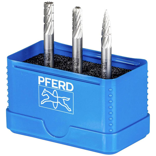 PFERD 22900810 Burr set: 3 HSS pins 6mm shank break-proof box.