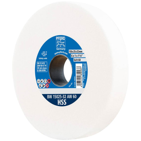 PFERD manufactures the BW 15025-32 AW 60 HSS bench grinder disc with a diameter of 150 mm. This high-speed steel disc is designed for precision grinding applications. It is ideal for sharpening tools and polishing metal surfaces.