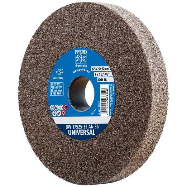 The PFERD bench grinder disc, model BW 17525-32 AN 36 UNIVERSAL, features a 175 mm diameter suitable for versatile grinding tasks. Manufactured by PFERD, it is designed for high performance and durability. Typically used in workshops, this disc accommodates a range of metal processing applications.