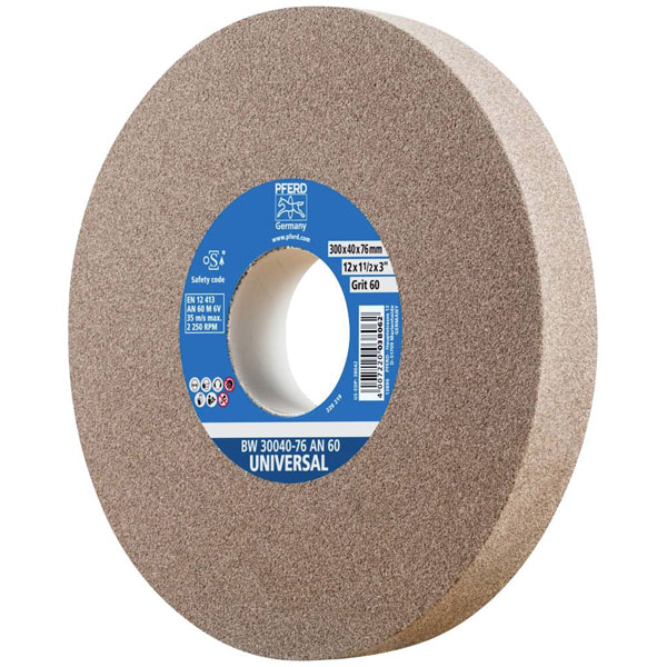 PFERD manufactures the BW 30040-76,2 AN 60 UNIVERSAL grinding disc, which has a diameter of 300 mm and a bore diameter of 76.2 mm. This grinding disc is designed for versatile use across various materials, providing reliable performance for grinding tasks. It is ideal for both industrial and professional applications where precision and efficiency are required.