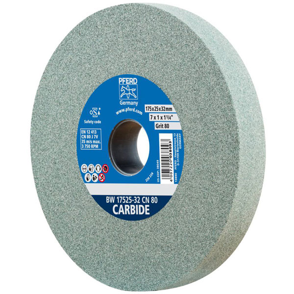 PFERD manufactures the BW 17525-32 CN 80 carbide bench grinder disc. This disc has a diameter of 175 mm and is designed for durability and precision in grinding tasks. It is typically used for fine finishing and sharpening of tools.