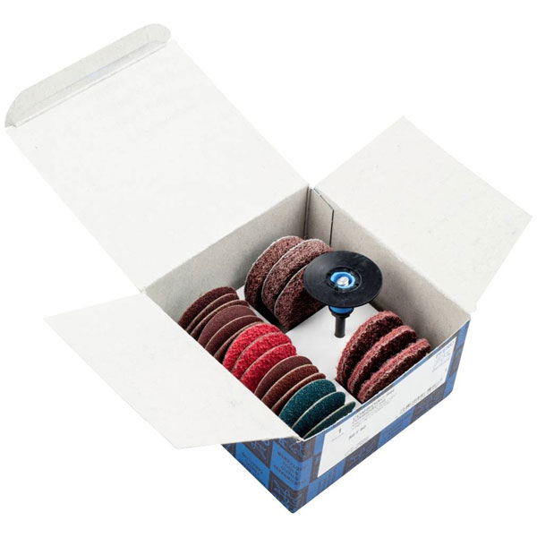 The PFERD COMBIDISC-SET 50 is a grinding disc set with a diameter of 50 mm designed for efficient surface finishing. It is ideal for deburring, blending, and cleaning various materials. This high-quality tool is frequently used in metalworking and maintenance applications.