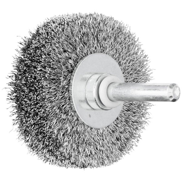 The PFERD Round Brush with Shaft, model RBU 5015/6 ST 0.20, is a machine tool wire brush suitable for various cleaning and surface finishing tasks. Featuring ungezopft (untwisted) wire, it offers effective brushing performance on metal surfaces. Commonly used for removing rust or paint, this brush is ideal for professionals needing precise surface treatment.