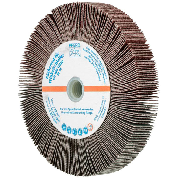 The PFERD slat grinding wheel is designed for use with angle grinders, featuring a diameter of 125 mm for efficient grinding. This high-quality grinder accessory is ideal for surface finishing and material removal tasks. The product is typically used in metalworking and construction applications.