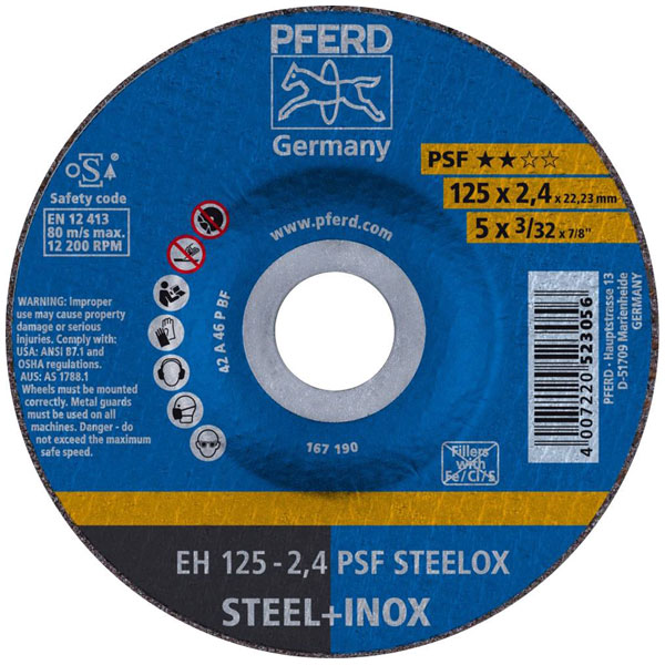 Pferd's PSF Steelox cutting disc, model 61720326, is designed for efficient cutting of stainless steel and regular steel. This off-set disc, sized at 125 mm, comes in a pack of 25, and is ideal for precision cutting applications. It is typically used in metalworking to achieve clean cuts in various steel types.