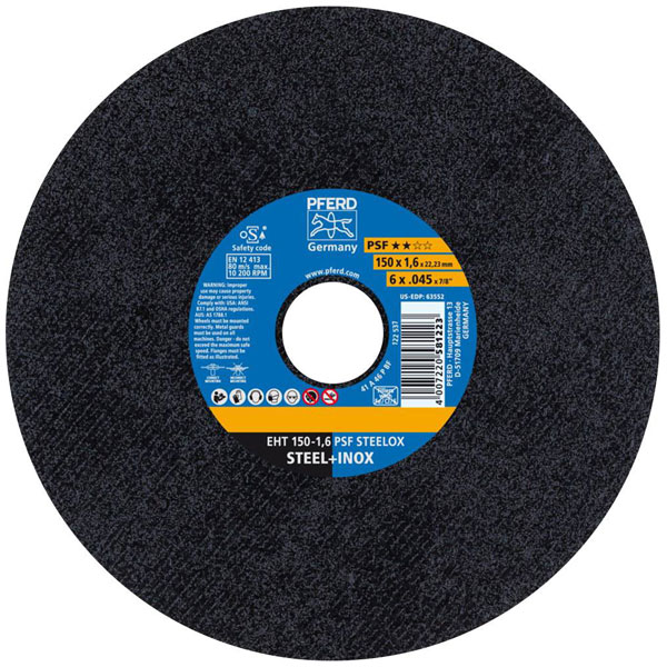 The PFERD PSF Steelox 61724121 is a straight cutting disc designed for use on stainless steel and steel. It features a 150 mm diameter, making it suitable for precise cutting tasks. Common applications include industrial metal fabrication and workshop use.