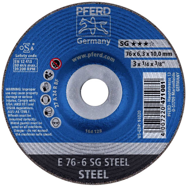 PFERD 62208626 Grinding Disc 76mm steel for angle grinders 10 pcs