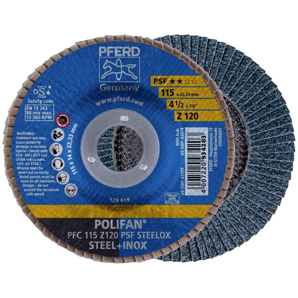 PFERD 67769115 PFC 115 Z 120 PSF flap Disc 115 mm steel/stainless steel