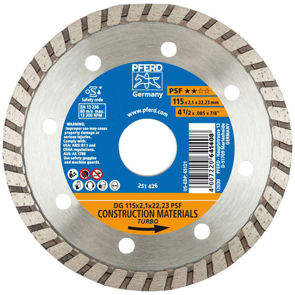 PFERD 68011222 Diamond Cutting Disc 115mm Diameter 22.23mm bore 1pc