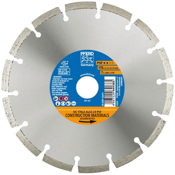 PFERD 68017221 Ds Psf Diamond Cutting Disc 178mm x 22.23mm 1 piece