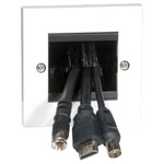 A single gang faceplate with a 'brush' lined slot, giving a neat and tidy appearance to TV and data cables.
