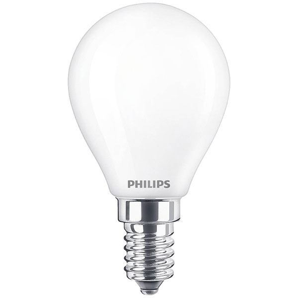 Philips Lighting's LED bulb, model 76283400, features a teardrop shape and fits an E14 socket. This Classic LED light bulb provides warm white illumination at 6.5 W, equivalent to 60 W, making it energy-efficient and suitable for various indoor settings. Its compact size of 4.5 cm by 8 cm is ideal for small fixtures or decorative lighting.