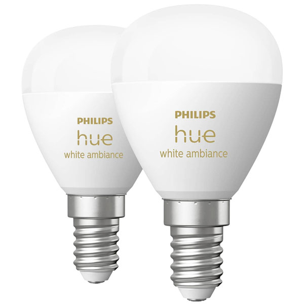 The Philips Lighting 8719514491168 LED light bulb features wireless and remote control capabilities. This Hue White Ambiance Luster E14 5.1 W bulb provides versatile lighting options. Ideal for creating various ambiences, they are perfect for home and office settings.