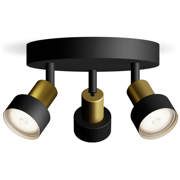 Philips Conduit 8720169299955 is a ceiling spotlight with a sleek black and gold finish. This GU10 ceiling light is designed for indoor lighting and adds elegant illumination. It is ideal for both residential and commercial spaces, providing focused and stylish lighting solutions.
