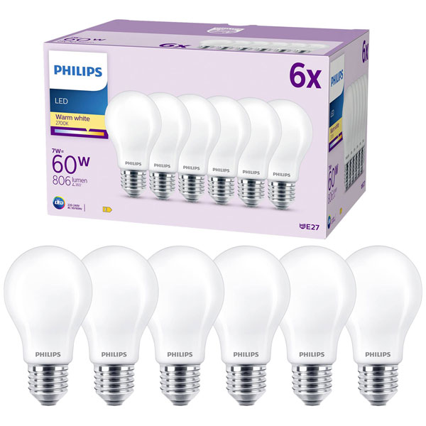 Philips 9290012430 LED Lamp E-27 7W=60W Warm White 50x106mm 6 pcs