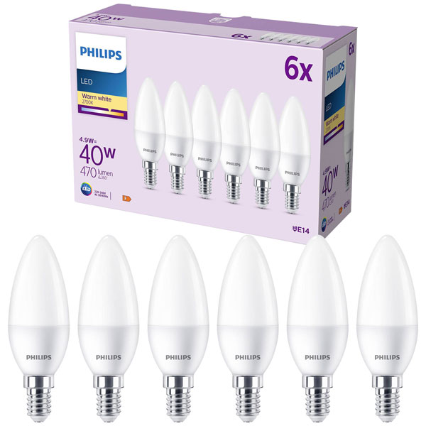 Philips 9290035411 LED Candle 4.9W E14 Warm White 35x106mm 6pcs Energy Save