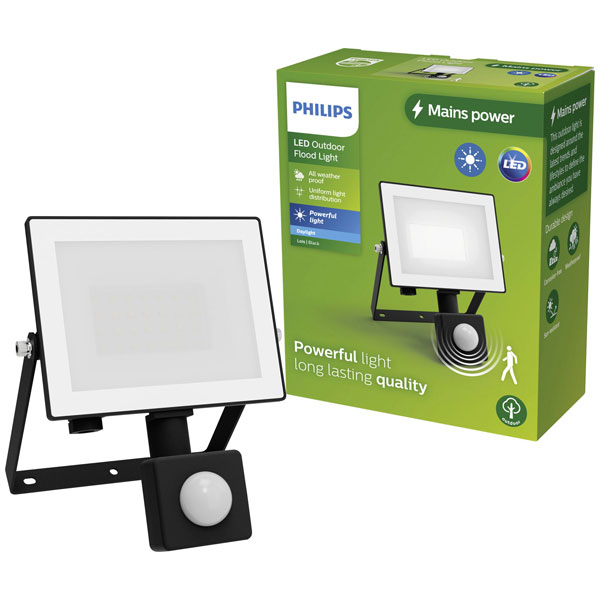 Philips 929004642301 is an LED floodlight designed for outdoor applications, offering a robust and energy-efficient lighting solution with a power consumption of 20 watts. This floodlight provides cool white illumination and is equipped with a motion detector, enhancing security and convenience for exterior areas such as gardens, pathways, and driveways. As an advanced alternative to traditional halogen floodlights, the Philips floodlight offers superior longevity and lower energy costs, making it an ideal choice for engineers seeking durable and sustainable outdoor lighting solutions. It is well-suited for use in residential, commercial, and industrial settings where consistent and reliable illumination is required.