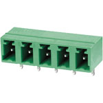Right-angled green PCB header from Phoenix Contact, 5.08 pitch, with 8 ways.