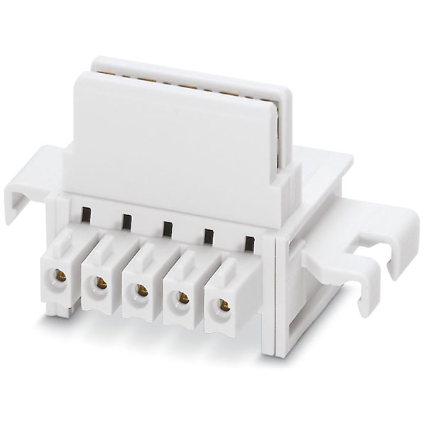 DIN rail mounting, locking: without, mounting: without, type of packaging: packed in cardboard, Item with gold-plated contacts, bus connectors for connecting with electronics housings, 5 parallel contacts.