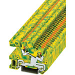 Green and yellow Din Rail terminal block from Phoenix Contact with push-in connection, 5.2mm wide.