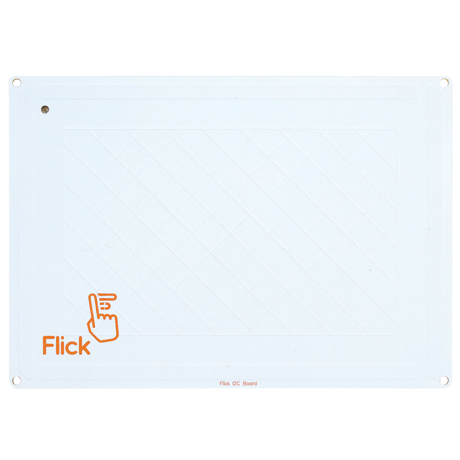 Draw a circle, swipe your hand - Flick Large will track it. Integrate Flick into your I2C project to give you multiple ways of controlling it. Using the near field gesture technology, you're able to hide your project behind non-conductive material (wood/acrylic) and still use Flick Large (please note however that mounting it in this way may reduce the sensor range).