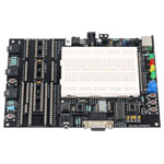 The PICAXE AXE091U development board is compatible with any size or revision of PICAXE chip and allows circuits to be quickly tested using its prototyping breadboard. A PICAXE 18M2 chip is supplied which operates at 32MHz and has 2048bytes of program memory, 512bytes RAM, 512bytes of table memory, 2 PWM channels, I2C, SPI and an internal temperature sensor. The development board provides connectors for computer downloads and power, as well as simple input, output devices, such as LEDs and switches to get you started faster. Supplied with a PICAXE 18M2 chip, a USB download cable, battery holder, and a CDROM containing software and manuals.