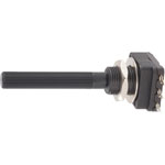 Dustproof enclosed logarithmic potentiometer with PCB connector and self-extinguishing plastic housing.
