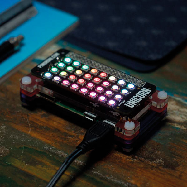 Note: Unicorn HAT HD works best with a 2A micro USB power supply for your Pi. We recommend the official Raspberry Pi power supply 75-0532.