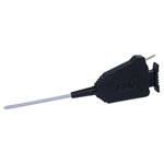 Miniature spring loaded black probe clip from PJP specifically designed for testing surface mount components.