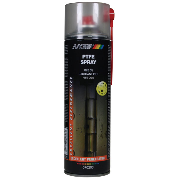 MoTip Pro PTFE Spray offers outstanding mechanical and thermal stability to treat mechanical parts of metal and plastic. It has a very low friction factor, a fine structure (particle size approximately 5 micrometre) and excellent adhesion. Resistant to weather influences, weak acids and bases, water-repellent and pH-neutral. PTFE Spray prevents wear and sticking.