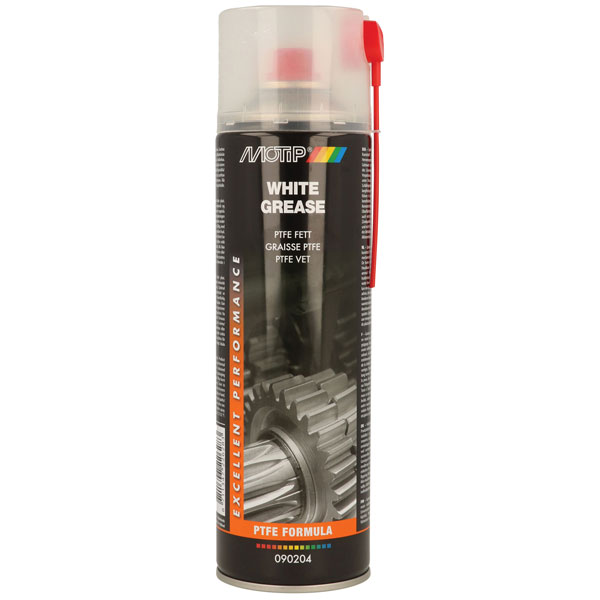 MoTip Pro White Grease Spray offers excellent adhesion and high viscosity, to lubricate mechanical parts of metal or plastic. Contains PTFE (polytetrafluorethylene) to prevent wear and sticking. It offers outstanding mechanical and thermal stability, whilst also being resistant to weather influences, weak acids and bases. It is also water-repellent and pH-neutral.