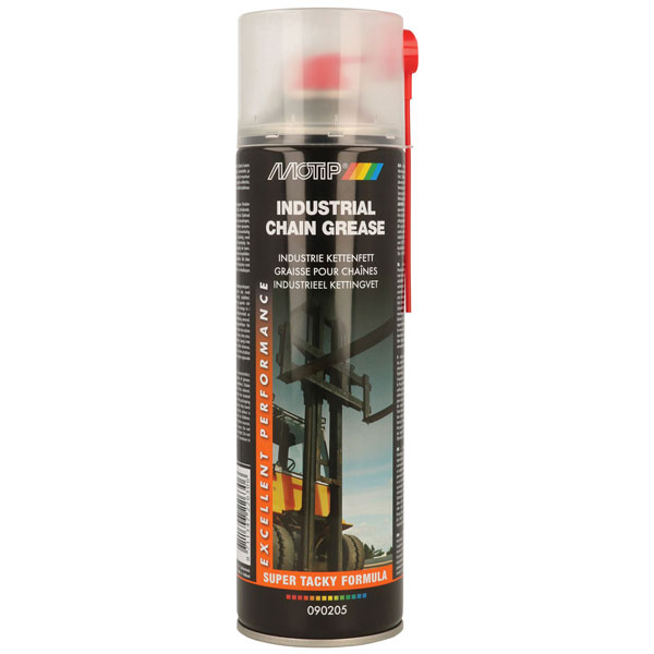 MoTip Pro Industrial Grease Spray is used to lubricate chain-driven transmissions, which are liable to heavy load. Industrial chain grease can be processed like oil, with the properties of grease. Offers outstanding mechanical and thermal stability, whilst also preventing wear and sticking. Resistant to weather influences, weak acids and bases, it is also water-repellent and pH-neutral.