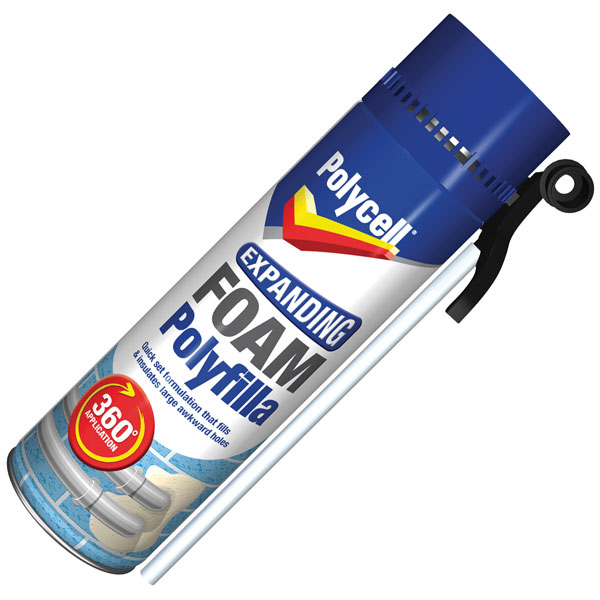 Polycell Expanding Foam Polyfilla is ideal for filling and sealing awkward gaps, hollows and cavities. It shoots liquid foam deep into cavities, creating a long lasting seal, which insulates against heat, sound and moisture. Suitable for internal or external use, it can be easily trimmed and sanded ready to be painted, filled or plastered.