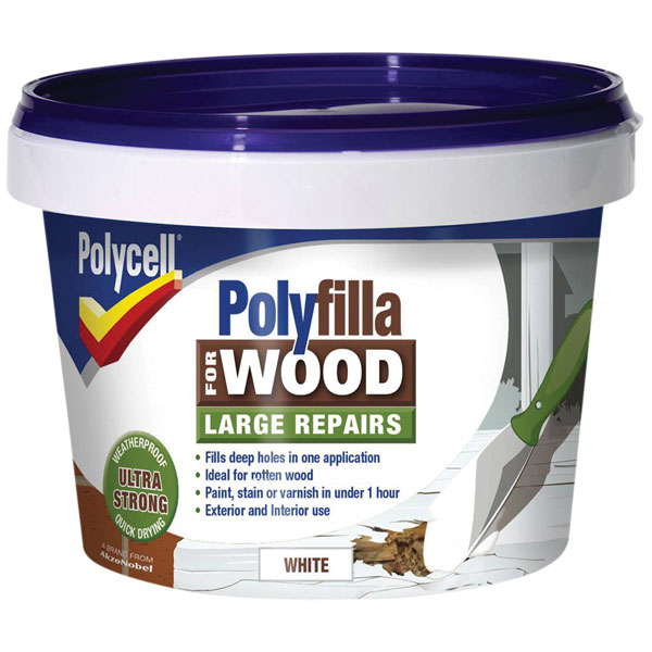 Polycell Polyfilla for Wood is a tough, 2 part wood filler which is suitable for exterior and interior wood. The woodfiller tackles all major wood repairs and can be painted, stained or varnished in under 1 hour. The two-component formulation provides strength and durability and is suitable for filling damage caused by decay and wet rot.