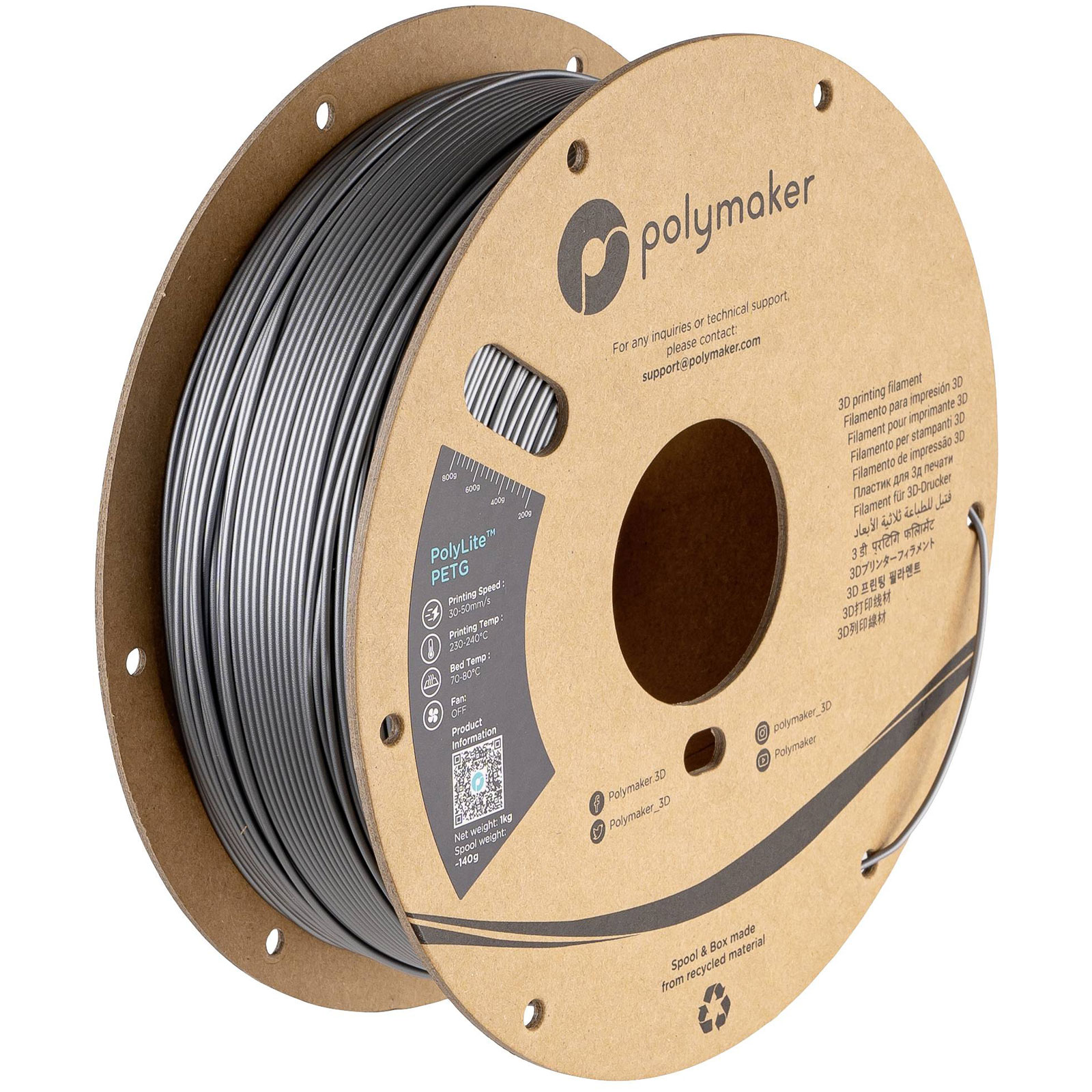 Polymaker PB01012 3132552 PolyLite Filament PETG Silver 1.75mm 1kg Spool