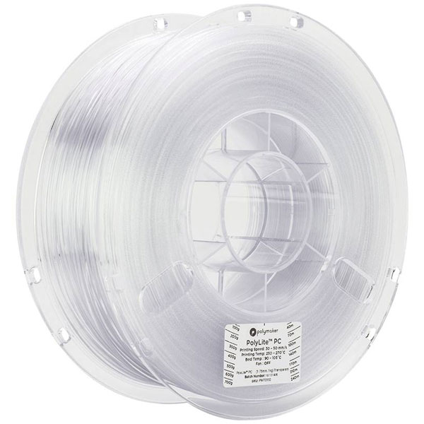 Polymaker PC01001 is a 3D printing consumable designed for use in precise and demanding engineering applications. This product is part of the PolyLite series, which is known for its high-quality thermoplastic materials. The Polycarbonate White variant, supplied in a 1kg spool, offers excellent impact resistance, dimensional stability, and optical clarity, making it particularly suitable for functional prototyping and manufacturing aids. With its ability to withstand high temperatures and maintain structural integrity, this filament is ideal for engineering applications that require durability and performance, such as automotive parts, electronic enclosures, and custom tools. The alternate description for this product is 2632937 - Polymaker PC01001.