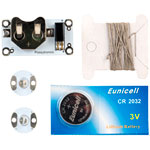 This Possytronics E-Textiles Battery Holder with Tilt Switch Kit uses conductive thread to attach 1 rainbow colours LED light to your textile project by simply tying a knot or sewing. A small tilt switch on the battery holder allows the lights to be easily turned on or off just by rotating your project through 90 degrees. A tilt switch is a little plastic box with a small metal ball bearing inside. When the battery holder board is rotated, the ball rolls on to the contacts and turns the lights on. When rotated again, the ball rolls off the contacts and the lights turn off.