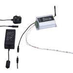 This high brightnes RGB LED lighting system control kit contains everything required to create Wi-Fi controlled LED lighting using a Android smartphone or tablet or an iPhone. Each smartphone or tablet can control up to 16 Wi-Fi units independently so that it is possible to set up, using different RFIDs, elaborate multizone lighting systems.