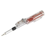 Precision screwdriver with extendable shaft suitable for a range of applications. Features a built in LED for low-light work areas. Handle features integral bit storage and pocket clip. Supplied with six high quality double end Chrome Vanadium steel bits. 3 x LR44 cells supplied.