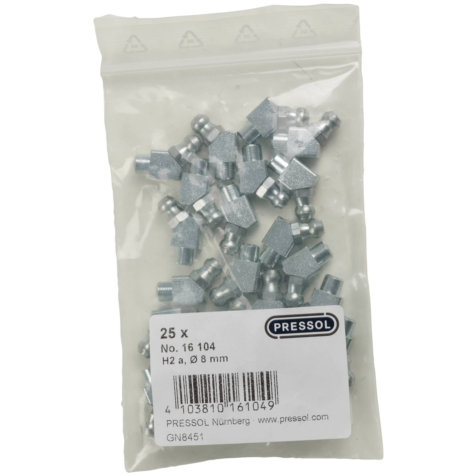 Pressol 16 104 Tapered Lubricating Nipples H2 A-45° Ø8mm VZ-E 25pcs |