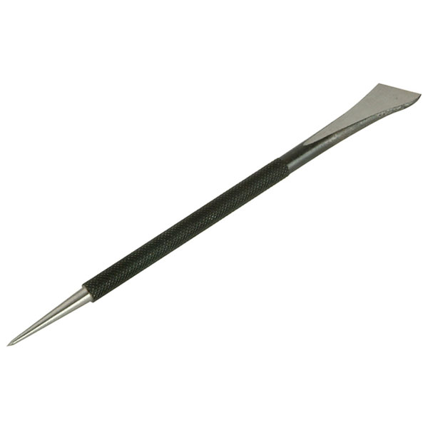 Combination scriber with a knurled body to give a positive finger grip and sharp ground, heat treated points to give a long life. Having one point and one knife edge, it is ideal for marking wood, plastic and laminates.