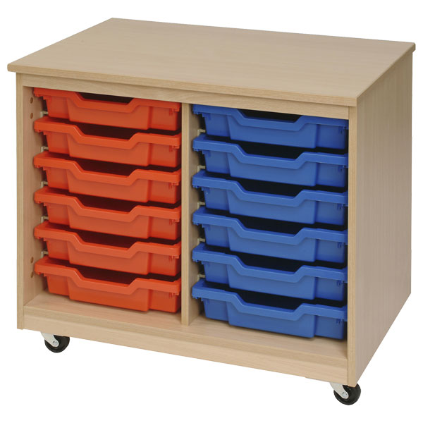The Classroom Mobile Storage Unit with 12 Assorted Colour Trays is a very popular mobile classroom storage unit available with storage trays. This range of classroom storage comes in a beech finish with impact resistant edges and can be coloured co-ordinated through the use of compatible Gratnells trays. Unit dimensions are H590 x W700 x D495mm. For mobile unit please add 60mm to the height. All units supplied with castors giving you the option of mobile or static. All storage units have an integral solid 12mm back and are supplied fully assembled.