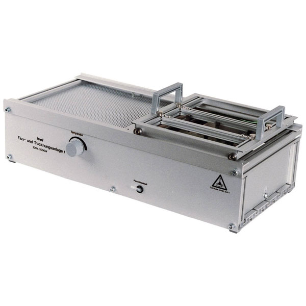 The Proma 142 030 2000 flux and drying unit features a liquid absorption capacity of 400 cm³ and operates at 230 V/2000 W. It is typically used in etching and soldering systems for PCBs, offering efficient flux application and drying. This unit is an essential component in electromechanics and PCB accessory setups.