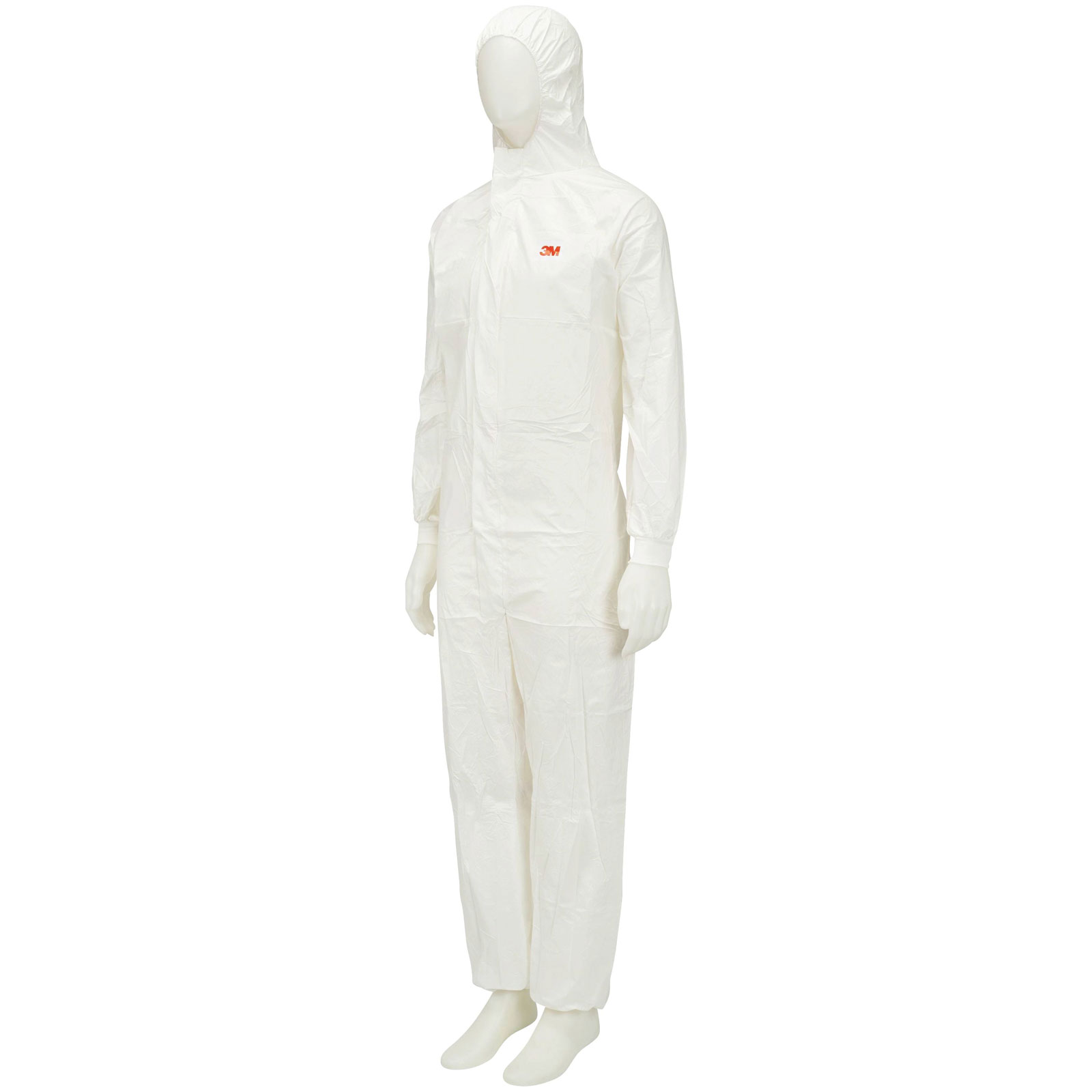 The lightweight, anti-static 3M™ protective suit 45452XL made of polyethylene features high freedom of movement and good wearing comfort. Its material is extremely durable and robust as well as low-lint thanks to the special layer combination of soft spin fleece fibres and a polyethylene laminate film. Knitted cuffs, elasticated waist and ankles make the wearer more comfortable and increase freedom of movement, while the ultra-low linting material reduces environmental contamination. Its 3 panel hood design is compatible with additional PPE (Personal Protective Equipment). The 2-way zips and fully sealable storm flaps reduce the risk of skin exposure and protect from contaminants. Strong stitched and partially bound seams reduce the risk of leakage and skin exposure and can offer improved strength.. The 3M™ Protective suit 4545 provides protection against hazardous dust (Type 5), light liquid splashes (Type 6) and radioactive contaminated particles (EN 1073-2:2002). Its areas of application include asbestos inspection, insulation, asbestos disposal, cement production, grinding and polishing, Light industrial cleaning, machine maintenance, working in the pharmaceutical industry, paint spraying and coating as well as clean room applications. It has the size 2XL and the colour white. The protective suit is vacuum-packed – for a space-saving storage.