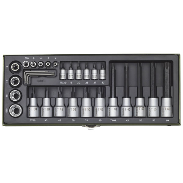 Proxxon 23103 Bit Set 1/2" and 1/4" Drive 29-Piece Chromium Vanadium Steel