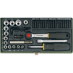 This 39-piece screwdriver and socket set from Proxxon Industrial includes 12 sockets with a ¼in (6.3mm) drive plus 16 high quality alloy Allen key bits for male hex and female hex square bits and 5 angled Allen keys. The set also includes a screwdriver handle with a ¼in square drive and an adaptor in the handle which can accommodate a ratchet or T-bar.